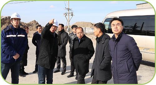2019年2月15日上午11:30分,綏化市副市長劉野、綏化市工業信息科技局局長謝殿濤暨安達市副市長劉寶鑄等一行來到黑龍江京盛華環保科技有限公司“危險廢物集中處置及資源化”項目施工現場進行調研工作。